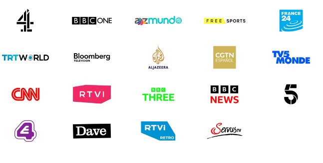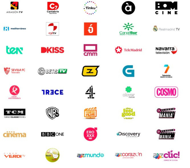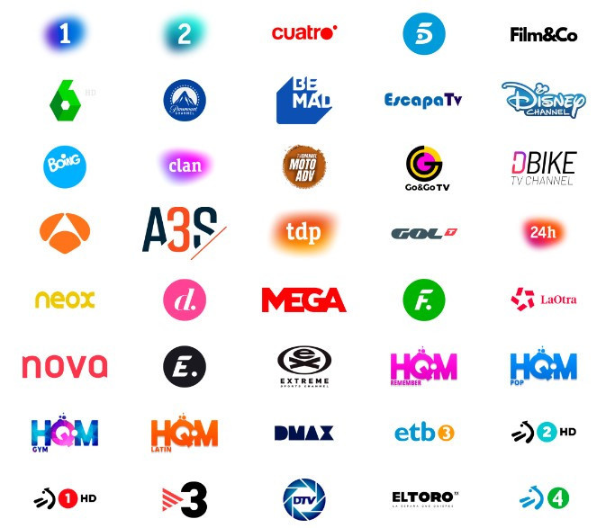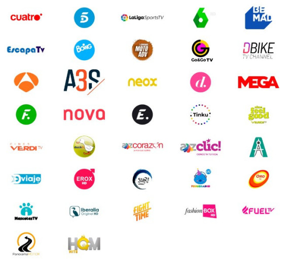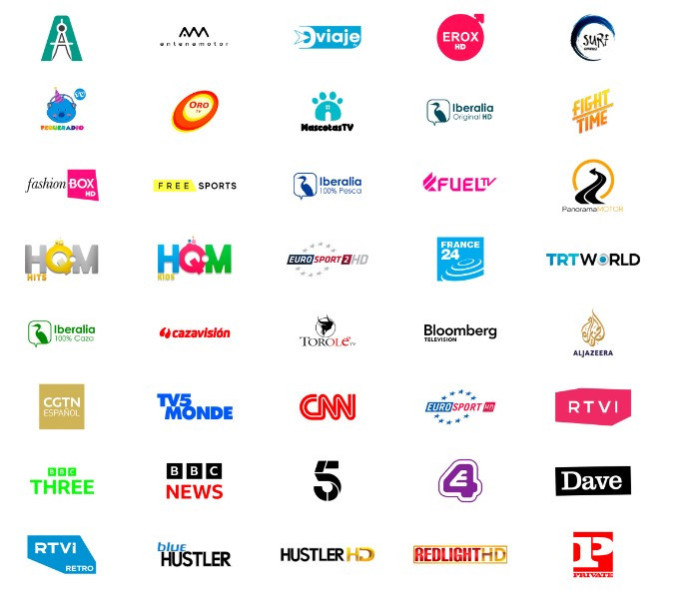 Más de 80 canales. Todos los canales de TDT y además canales de caza, pesca, toros, infantil, música, telenovelas, adultos, etc...